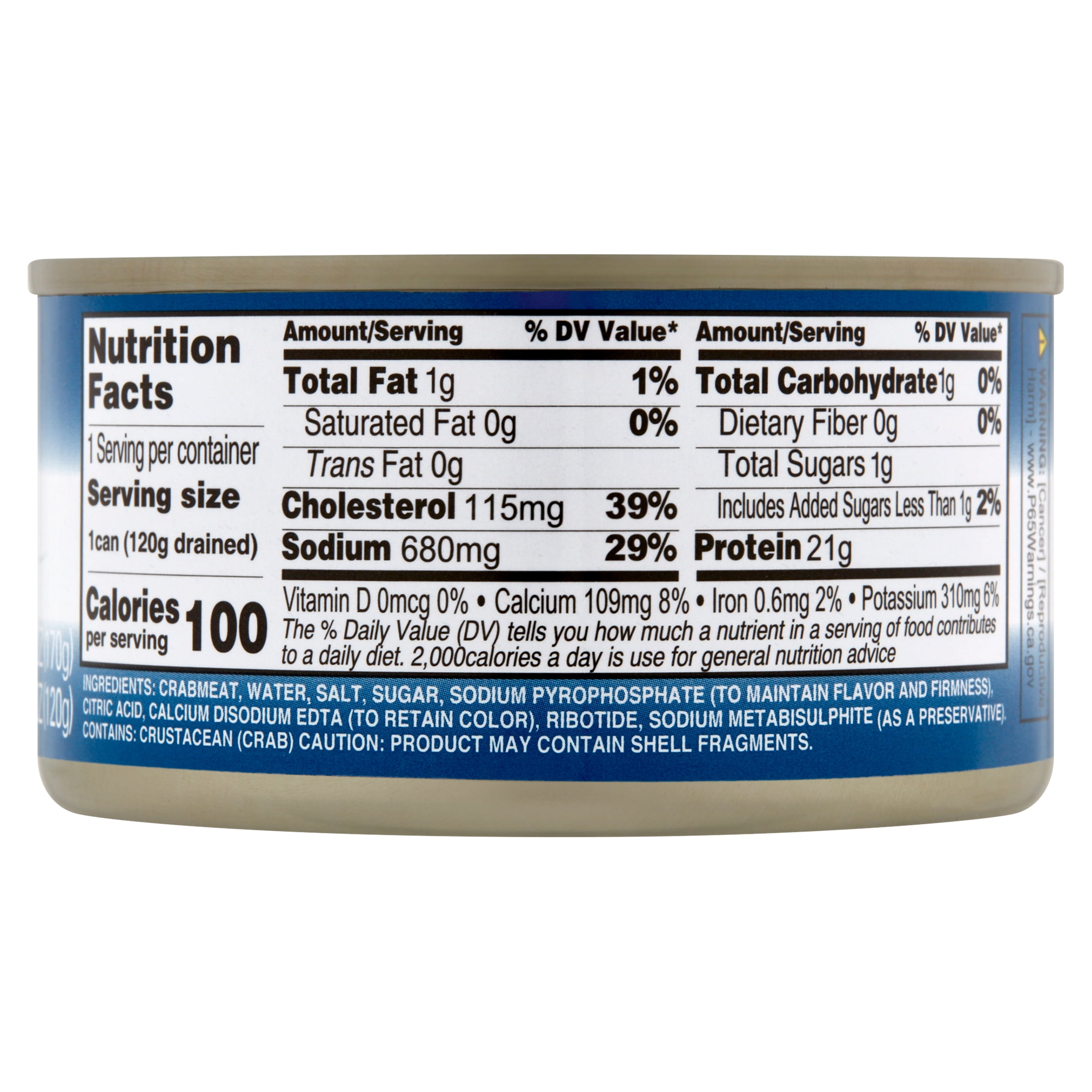 Imitation Crab Meat Nutrition - Prospre 100g of Imitation Crab Meat contains 5.4g of protein, which is about the same as 0.9 eggs, 0.2 chicken breasts, or 0.4 cups (104g) of black beans. Profile of ... Imitation Crab Meat calories, carbs & nutrition facts - MyFitnessPal Nutritional Info ; Carbs. 17 g ; Dietary Fiber. 1 g ; Sugar. 7 g ; Fat. 1.5 g ; Saturated. 0.3 g. Imitation Crab Meat Nutrition Facts - Eat This Much For a Serving Size of 0.5 cup (113g) ; How many calories are in Imitation Crab Meat? Amount of calories in Imitation Crab Meat: Calories 120, Calories from Fat ...