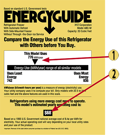 Energy guide label lookup - maims.shop Locate the "Estimated Yearly Electricity Use" box on the EnergyGuide label. (Ex. 400Wh) Now multiply the number of estimated kilowatts by the actual amount charged per kilowatt. In the example, we would need 400 kWh x 0.10 per kWh to generate a real charge of $40 per year for our new appliance. Web.