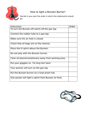 How to light a bunsen burner worksheet