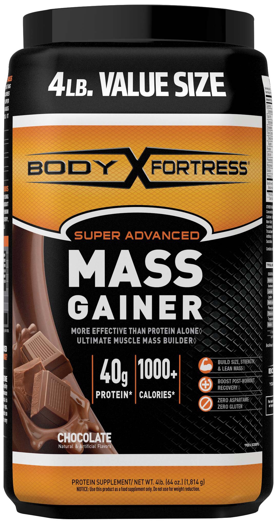 Body Fortress Super Advanced Mass Gainer Whey Protein Powder, Gluten ... Body Fortress Super Advanced Mass Gainer Protein Powder contains carbohydrates for a source of workout fuel, and for vital post-workout nutrition (1) This protein powder contains zero aspartame and is gluten free, perfect for delicious protein drinks or shakes 1 Serving Size contains 40g of Protein, 8g BCAAs, 1000 plus Calories, 198g of Carbs