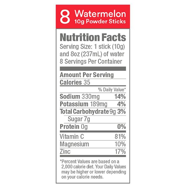 Electrolyte Powder Lemon Sticks - Nutrition Facts - MyNetDiary There are 35 calories in stick of Electrolyte Powder Lemon Sticks by Dripdrop Ors from: Carbs 9g, Protein 0g. Get full nutrition facts for your favorite ...